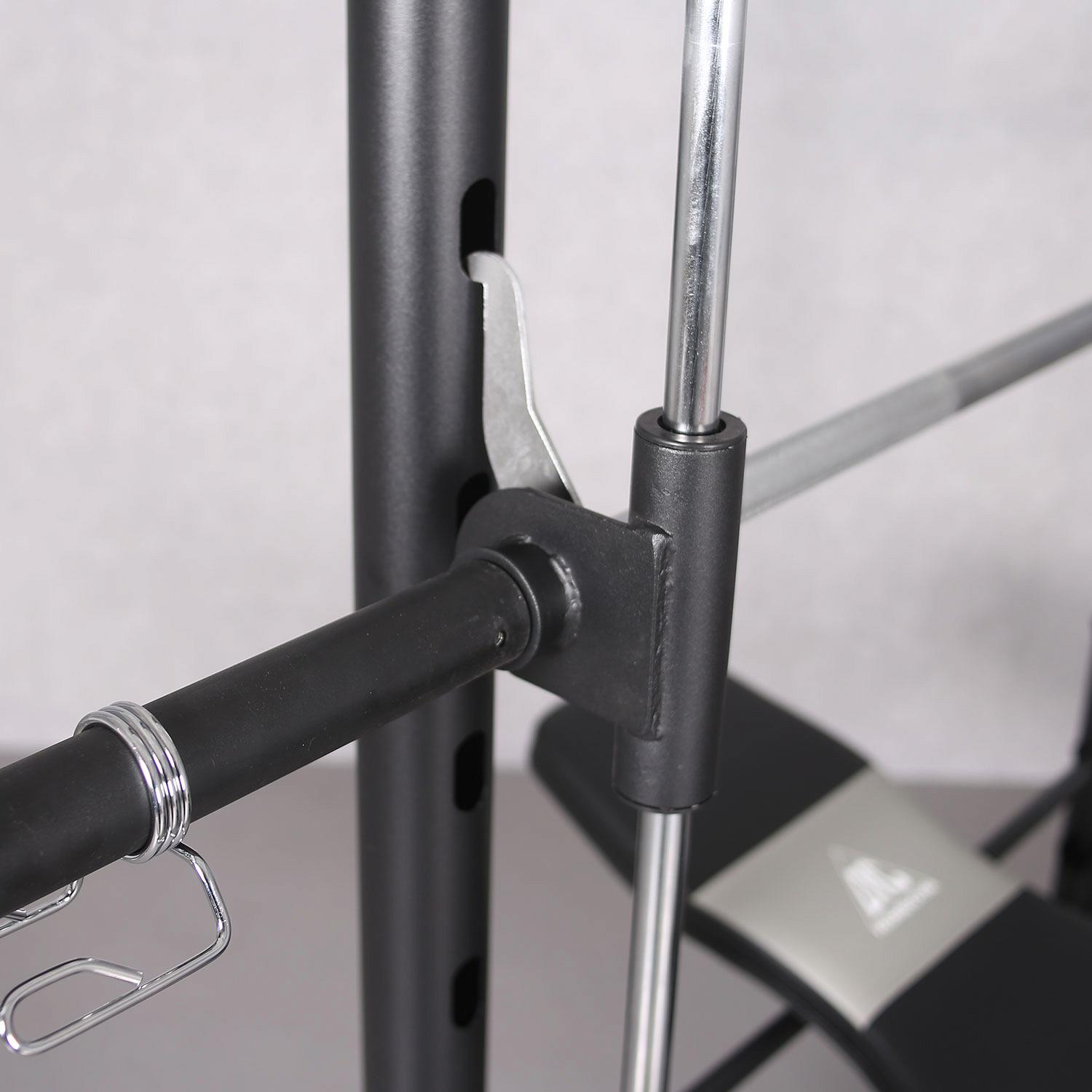 Обновленная модель Машина Смита DFC Homegym BN021/2. Новый цвет рамы и высокое качество изготовления. Спинка скамьи регулируется по углу наклона, 4 фиксированных положения. Тренажер имеет в комплекте парту для бицепса и сгибатель/разгибатель для ног. 3 пары удобных мягких валиков для выполнения силовых упражнений. Жимовой гриф и опции позволяют использовать веса (диски) Ø51 мм. Диски приобретаются отдельно. Силовой тренажер выполнен из высококачественной стали с порошковой окраской.