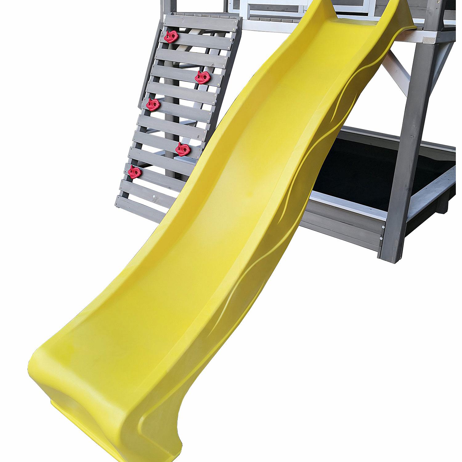 Помимо домика, городок изобилует захватывающими игровыми элементами, которые понравятся каждому подвижному ребенку. Удобная песочница приглашает к творческой лепке и строительству замков. Пластиковая горка с двойной волной и высокими защитными бортиками гарантирует безопасные и захватывающие спуски.