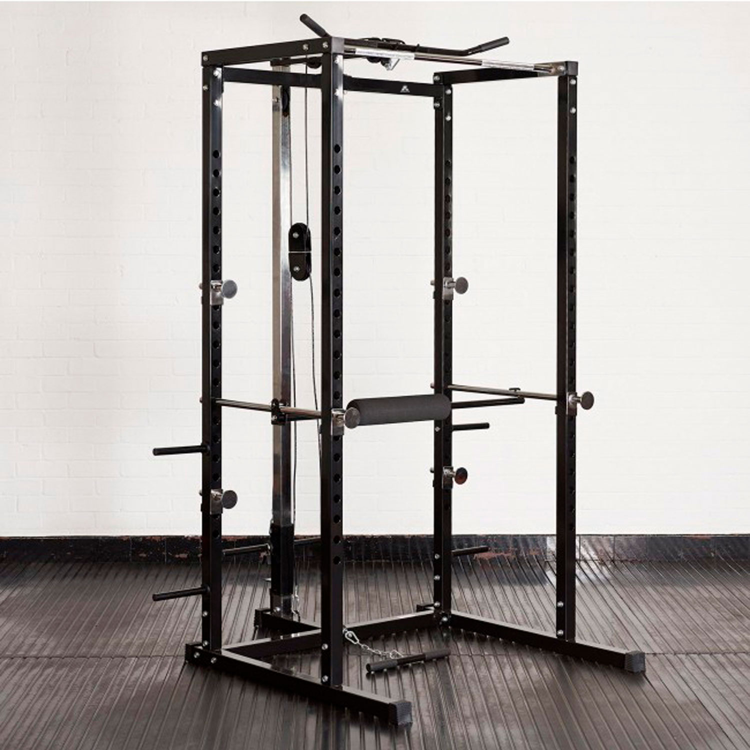 Тренажер со свободными весами. Позволяет выполнять широкий спектр упражнений со штангой: приседания, жим, подтягивания на турнике, различные виды тяги и другие силовые тренировки.
