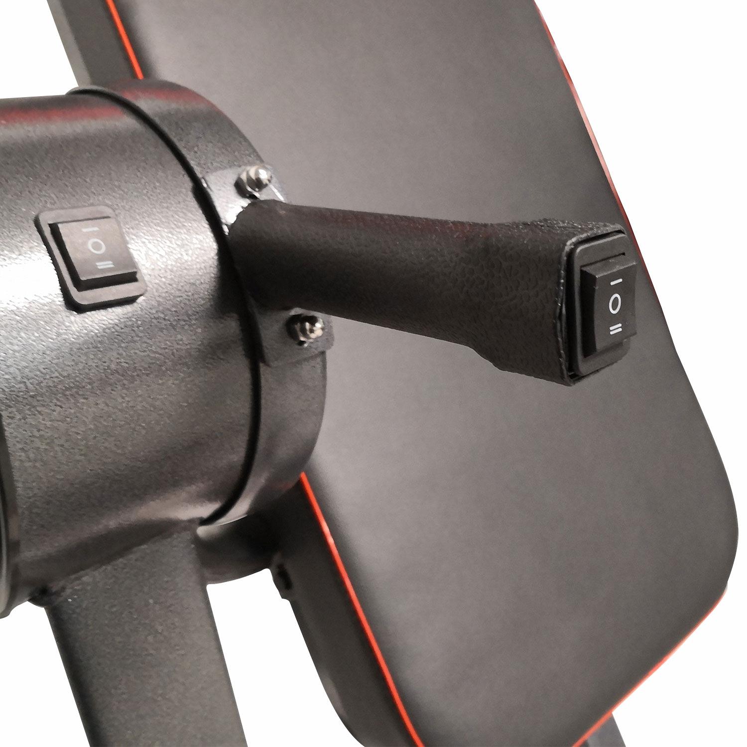 Стол оснащен 2 моторами различной мощности: большой мотор 60Вт 24В для инверсии и маленький мотор для фиксации лодыжек. Управление каждым мотором происходит с помощью отдельной кнопки справа от пользователя. Питание моторов от сети 220В через адаптер 24В 2,5А (в комплекте).