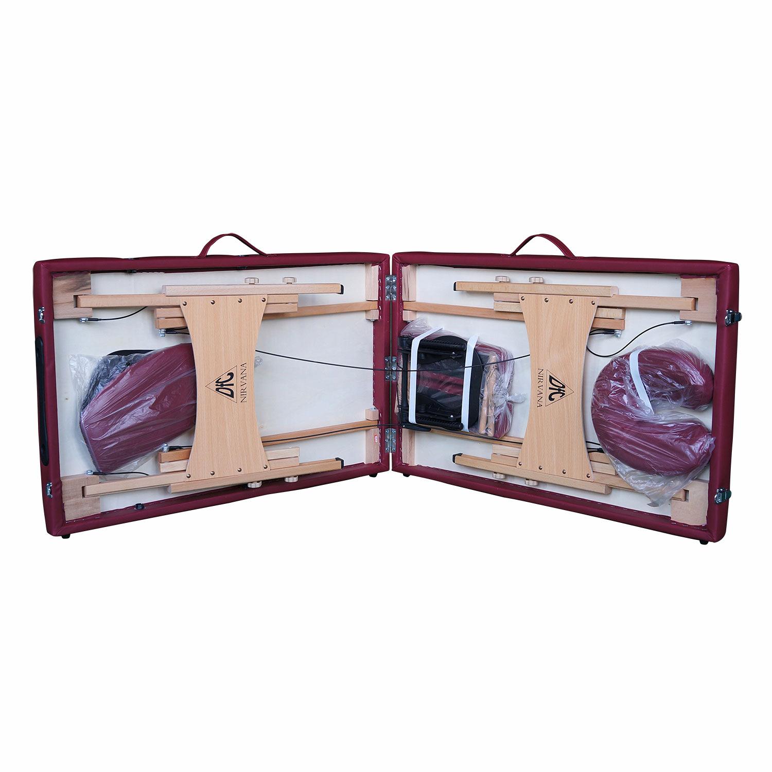 Изготовленная из высококачественного бука, рама кушетки NIRVANA Optima обеспечивает исключительную прочность и надежность. Несмотря на прочность, стол удивительно легкий, весом всего 12 кг. Это делает его невероятно удобным для транспортировки и хранения.