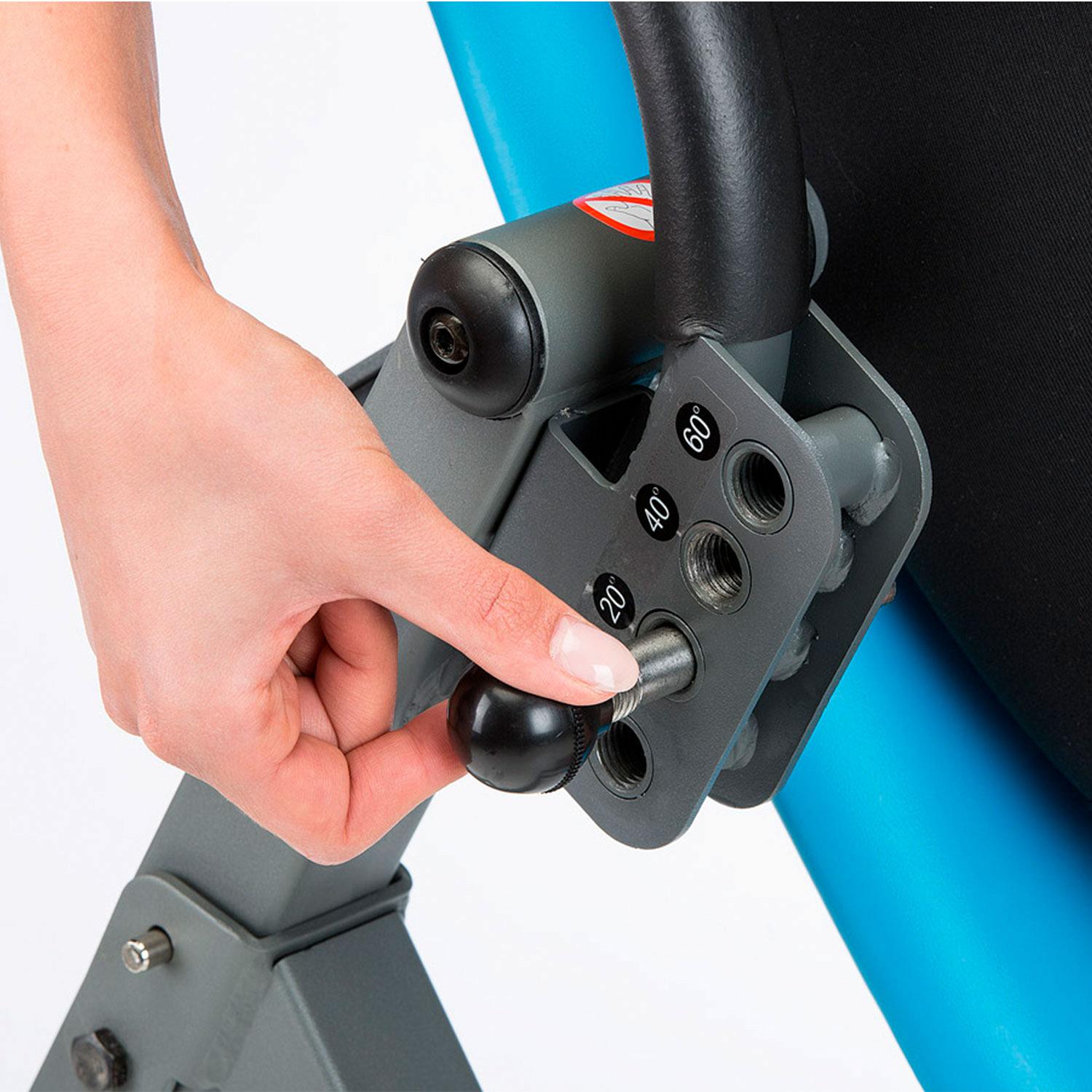 Складная модель для домашнего значения с удобной мягкой спинкой. Фиксатор для ног - 4 подушки из поролона, с длинной ручкой для регулировки положения.