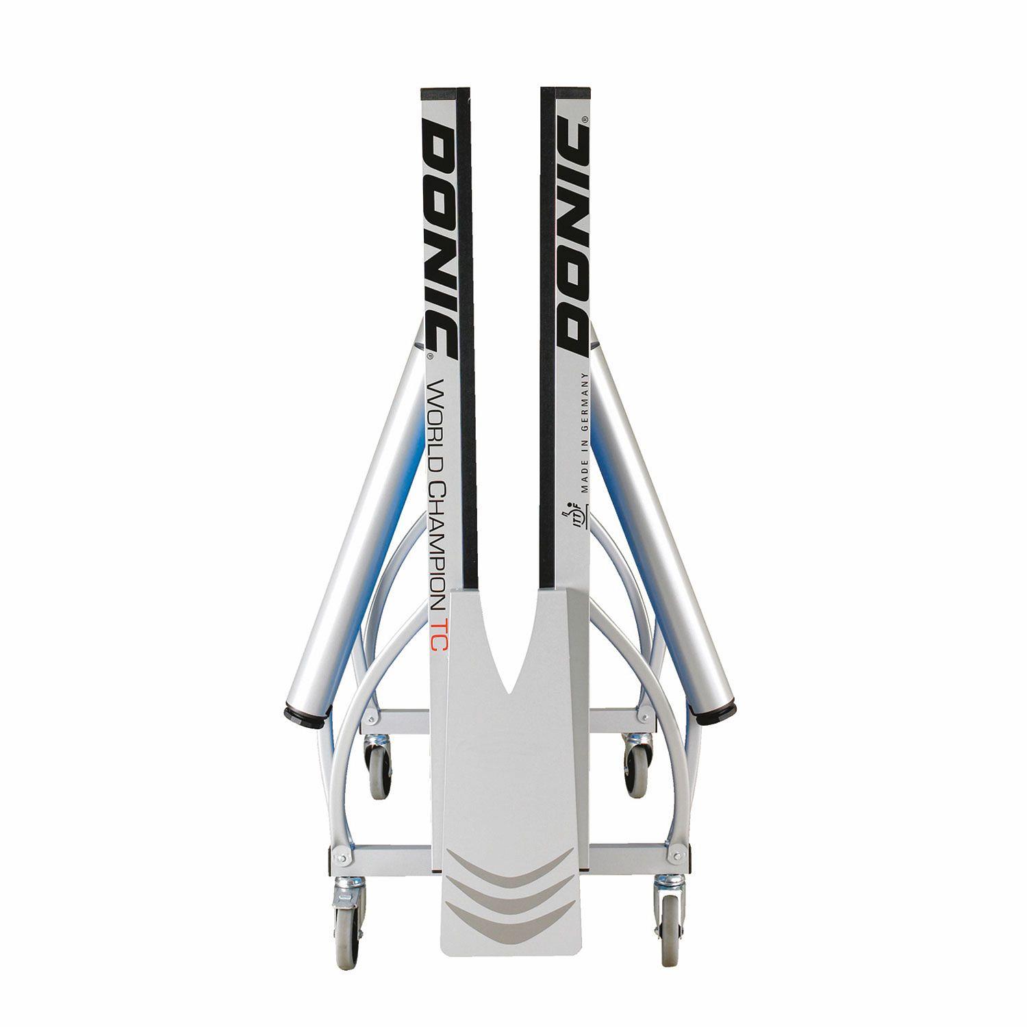 Стол изготовлен в соответствии со строгими промышленными стандартами DIN-рейки EN 14468-1, класса A, предназначенного для соревнований высшего уровня. Его оцинкованная стальная рама диаметром 60 x 20 мм обеспечивает непревзойденную долговечность, устойчивость к коррозии и долговечность. Широкие складные ножки диаметром 80 мм обеспечивают исключительную устойчивость, в то время как компенсаторы высоты гарантируют идеальный уровень игровой поверхности на всех типах поверхностей.