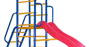 Комплекс состоит из классической горки, снабженной по бокам двумя шведскими стенками. Дети с удовольствием играют на этом детском спортивном уголке часами, при этом укрепляются мышцы, развивается ловкость и физическое здоровье малышей.